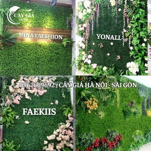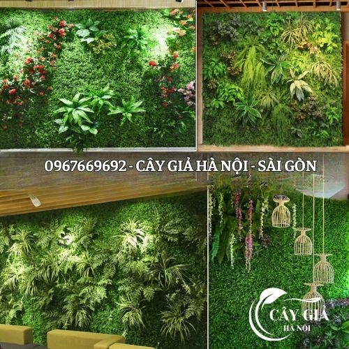 Tường cây giả được làm từ các loại lá, hoa và rêu nhân tạo cao cấp, mô phỏng tự nhiên sống động. Nhờ công nghệ sản xuất tiên tiến, sản phẩm có màu sắc tươi sáng, mềm mại và độ bền cao, không bị phai hay rụng như cây thật.
